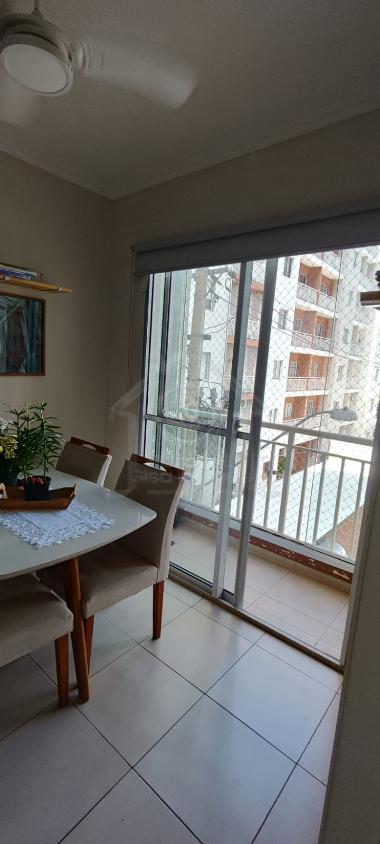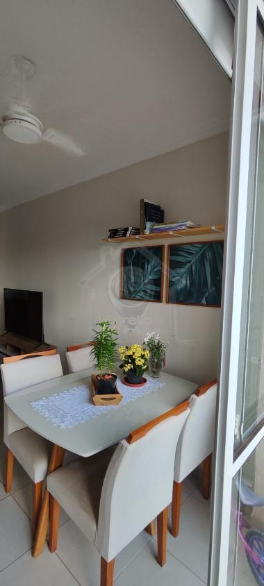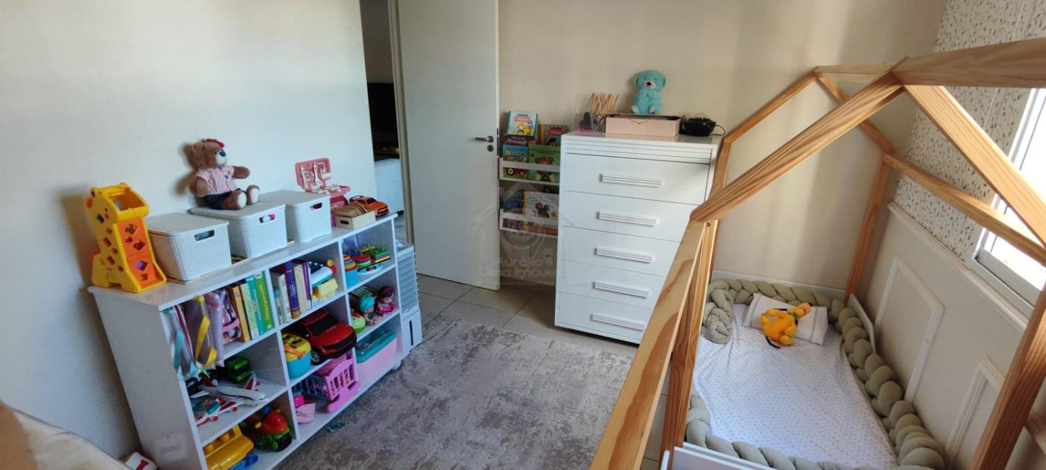Possui sacada fechada com vidro e rede de proteção, além de sala para dois ambientes.